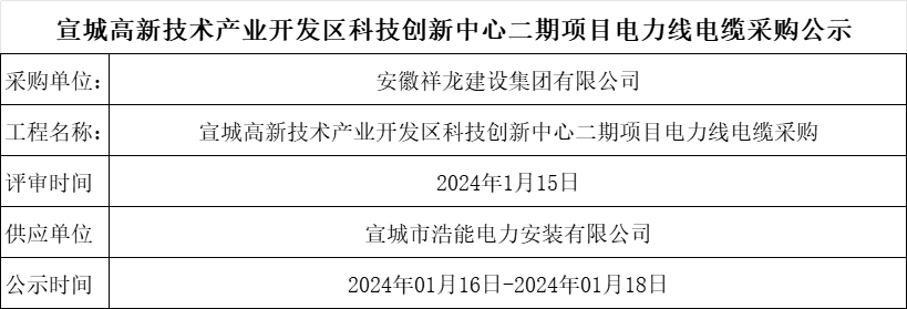 宣城高新技術(shù)產(chǎn)業(yè)開發(fā)區(qū)科技創(chuàng)新中心二期項(xiàng)目電線電纜采購公示